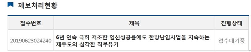 19.06.24 제주도 한방난임사업 6년간 임신성공률 3.3%에 그쳐…사업 지속하는 제주도에 감사...