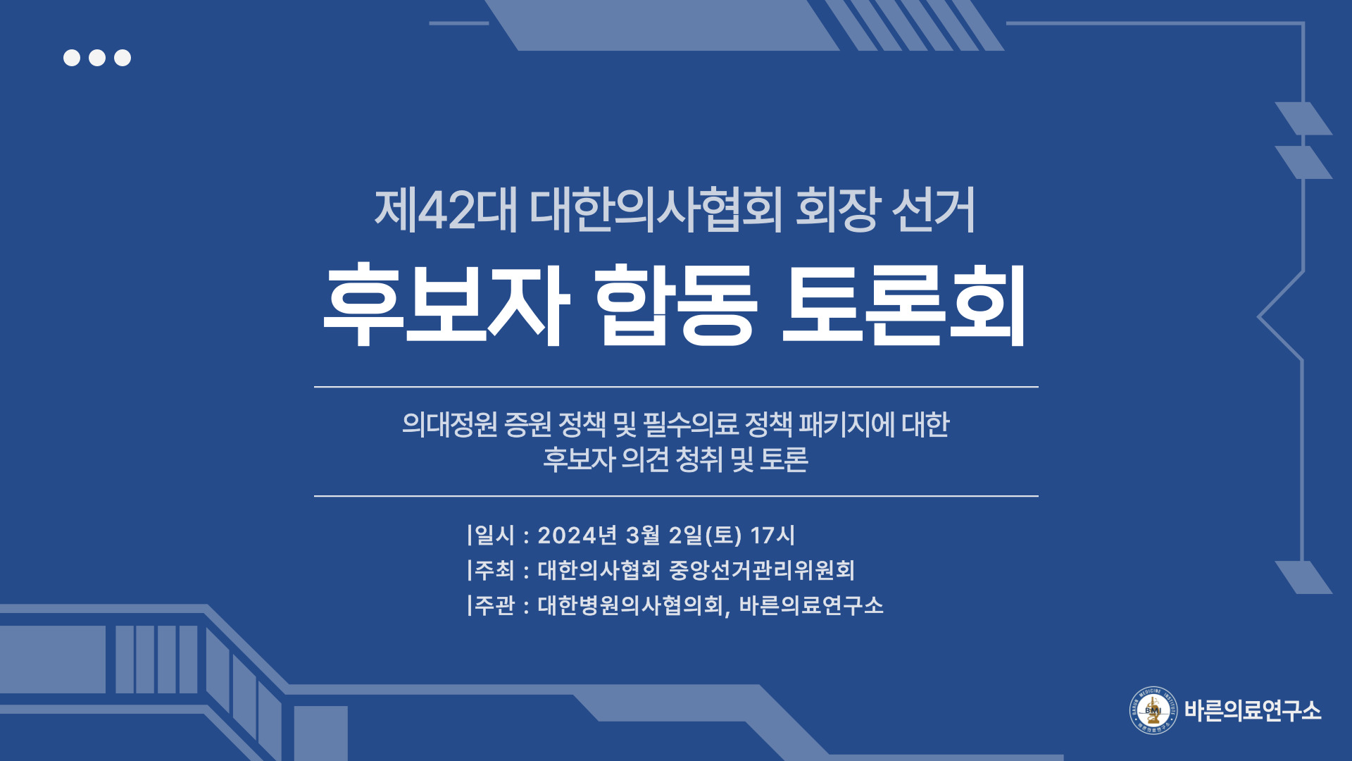 제3회 바른의료연구소 토론회 | 제42대 대한의사협회 회장 선거 후보자 합동 토론회 (병...