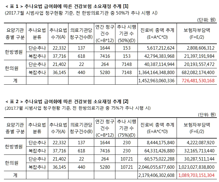 [바른의료연구소 보도자료] 보건복지부의 추나요법 급여화에 따른 재정추계는 완전 엉터리이다. - 복지부, 추나요법 급여화에 연간 1,087~1,191억 원이 소요되는 것으로 추계 - 바른의료연구소, 복지부의 산출식에 따라 추계해보니 이보다 무려 4.1배가 많은 연간 4,500~4,959 억원으로 추계돼 - 복지부, 자신들이 만든 산출식...