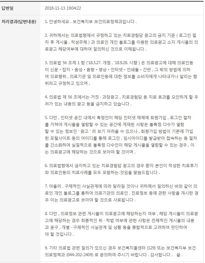 18.11.15 [보도자료] 바른의료연구소, 불법 의료광고의 판단기준에 대한 보건복지부의 유권해석을 받아내...