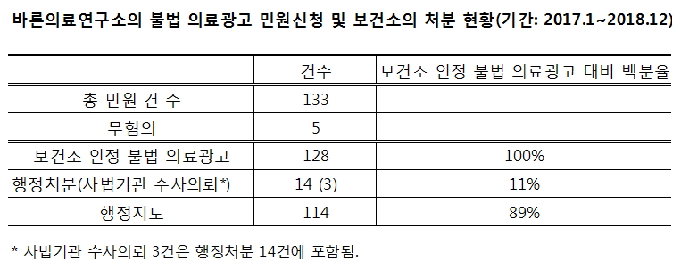 [바른의료연구소 보도자료] 보건소가 불법 의료광고에 행정지도를 내린 것은 법적 근거가 없는 위법한 처분이다. - 보건소, 불법 의료광고 10건 중 9건에서 행정지도만 내려 - 불법 의료광고 관련 보건소 처분의 적절성에 대한 보건복지부 유권해석 요청 - 보건소의 행정지도 처분은 법적 근거가 없음을 확인 - ...