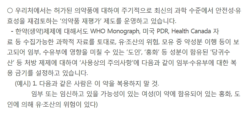 18.08.06 [보도자료] 보건복지부는 식약처가 임신부 복용금기로 규정한 한약으로 시행하는 시행하는 한방난임치료 임...