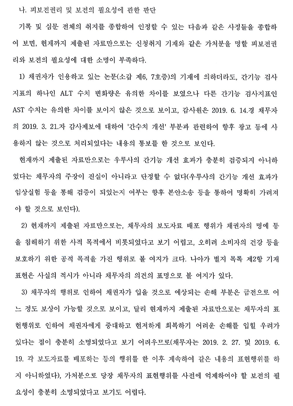 [바른의료연구소 보도자료] 바른의료연구소, 대웅제약이 제기한 명예훼손 및 업무방해 금지 가처분 소송에서 승소하다. - 바른의료연구소, 우루사 TV 광고의 거짓과장광고 의혹에 대한 민원신청- 식약처, 의약품광고 심의를 받은 내용대로 광고했다며 문제 없다고 회신- 감사원에 감사제보 결과, '간수치 개선' 부분과 ...
